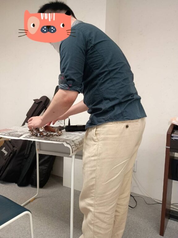思い思いに枝を丸く形づくり、くっつける作業をしました。