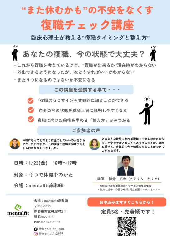 この講座では、あなたが復職という次のステップへ確実に進むために、専門家が持つノウハウを分かりやすくお伝えします。