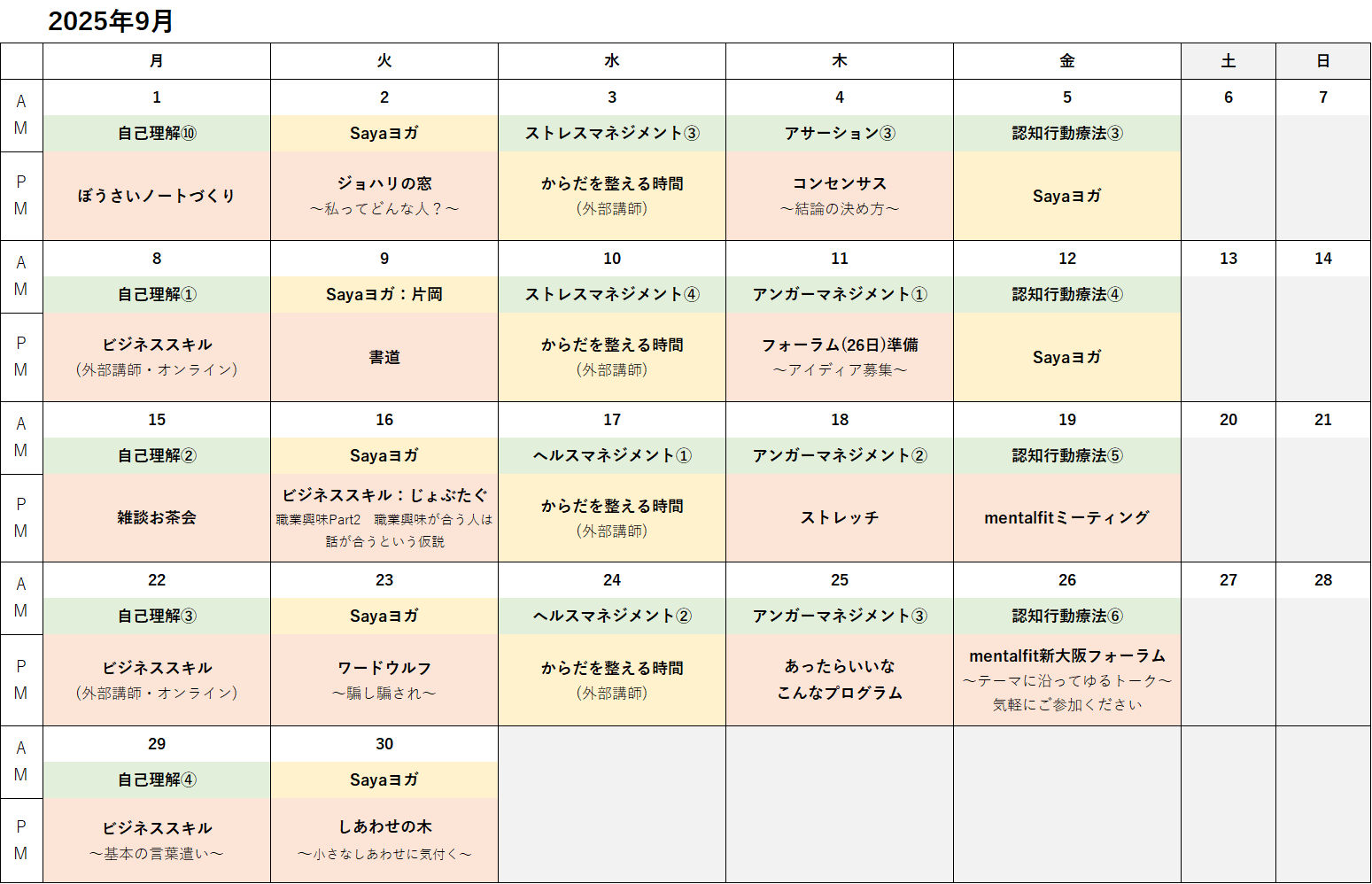 新大阪では、講義系のプログラムを午前中に実施し、その他の集団活動系のプログラムを午後に実施するようにしています。